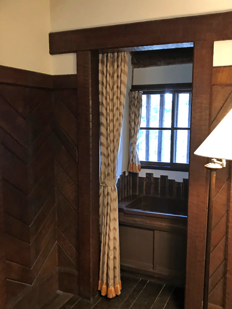 この半八角形の出窓は、度重なる改築で失われていましたが、当時の写真や痕跡をもとに復元されたもの。