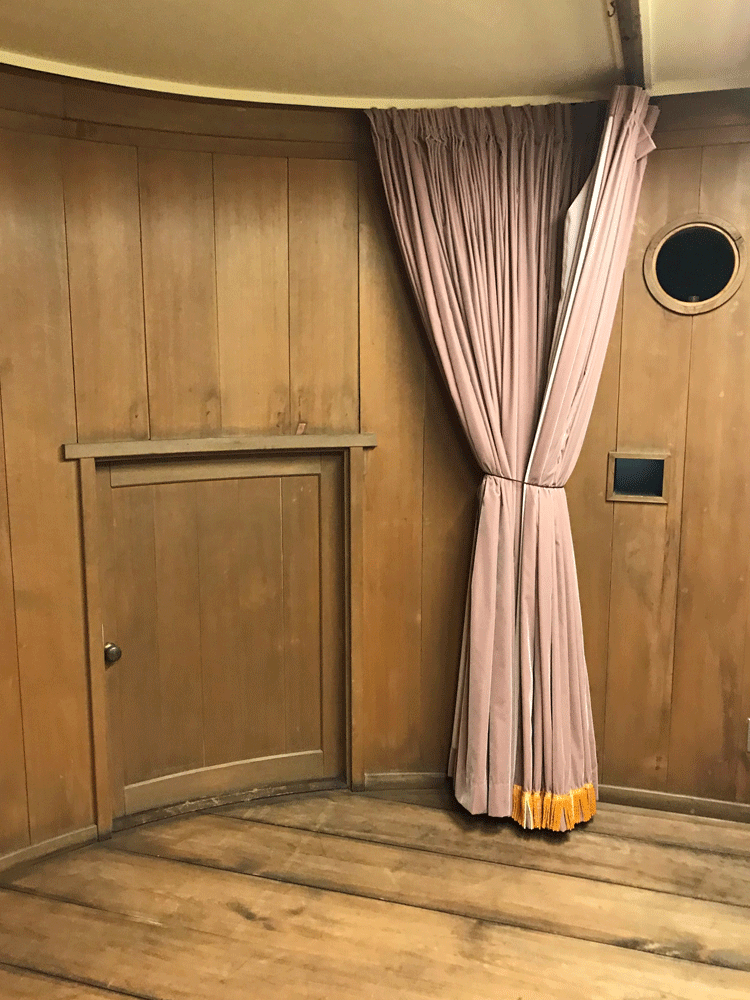 舞踏場の東側には半円形の小さな舞台が設けられています。能や狂言が演じられたということですが、他にもお芝居や演奏会などなど…何が上演されたのでしょうね。招かれた方のみが知る秘密の地下空間、まさに遊びを極めた贅沢な大人の社交場ですね。